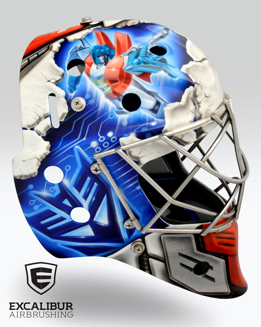 - Transformers goalie mask designed and airbrushed by Ian Johnson #ianjohnsonart #excaliburairbrushing #goaliemasks #customairbrushing #airbrushartist #goaliemaskpainting #maskpainting #helmetpainting #customhelmets #customairbrushedgoaliemask #transformers
