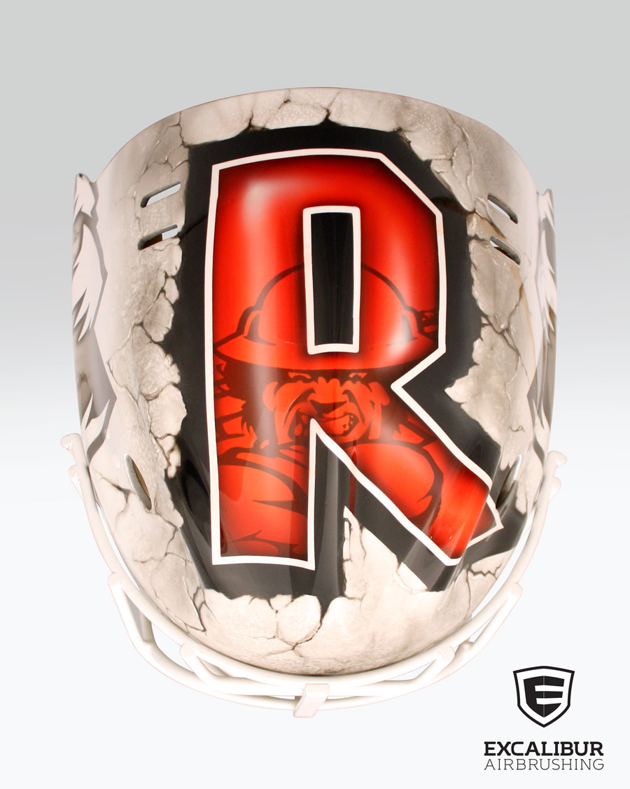 - Mask for NLL Calgary Roughnecks Goalie, Frankie Scigliano, designed and airbrushed by Ian Johnson #ianjohnsonart #excaliburairbrushing #goaliemasks #customairbrushing #airbrushartist #goaliemaskpainting #maskpainting #helmetpainting #customhelmets #customairbrushedgoaliemask #calgaryroughnecks