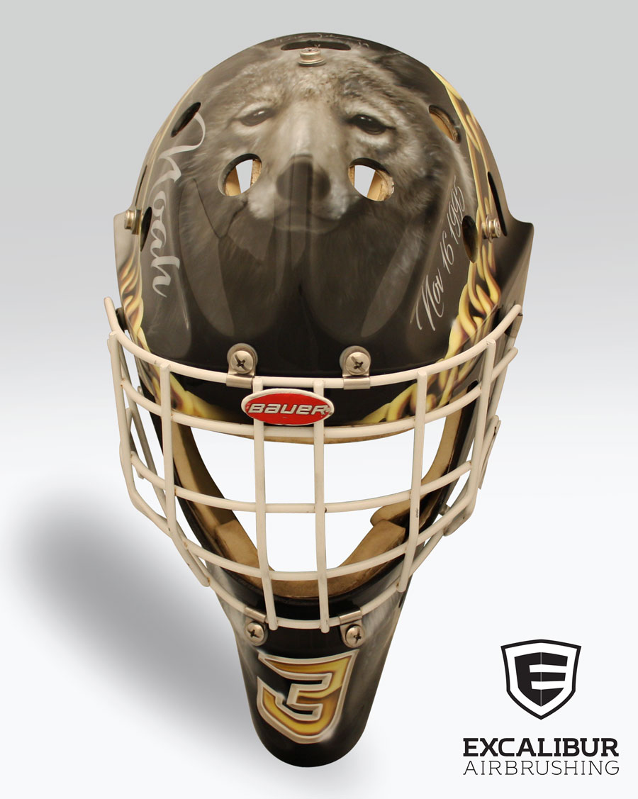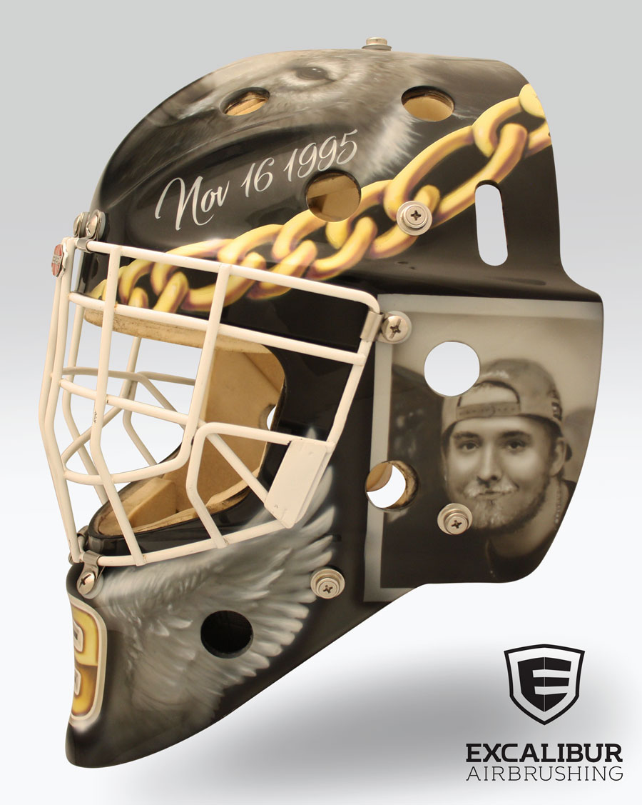 Tribute to Noah Trulsen, goalie mask designed and airbrushed by Ian Johnson