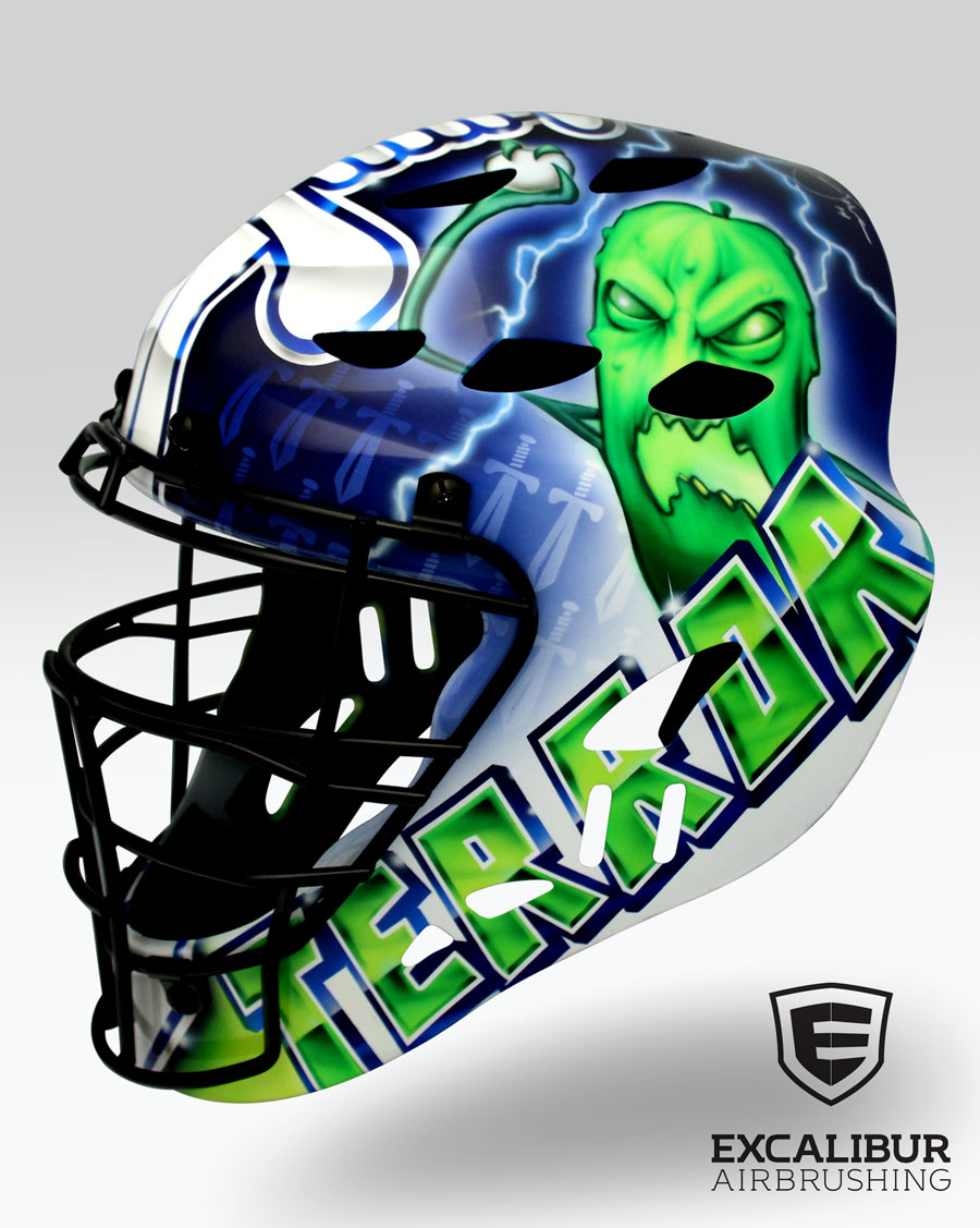 "The Mighty Monster" Goalie mask designed and airbrushed by Ian Johnson