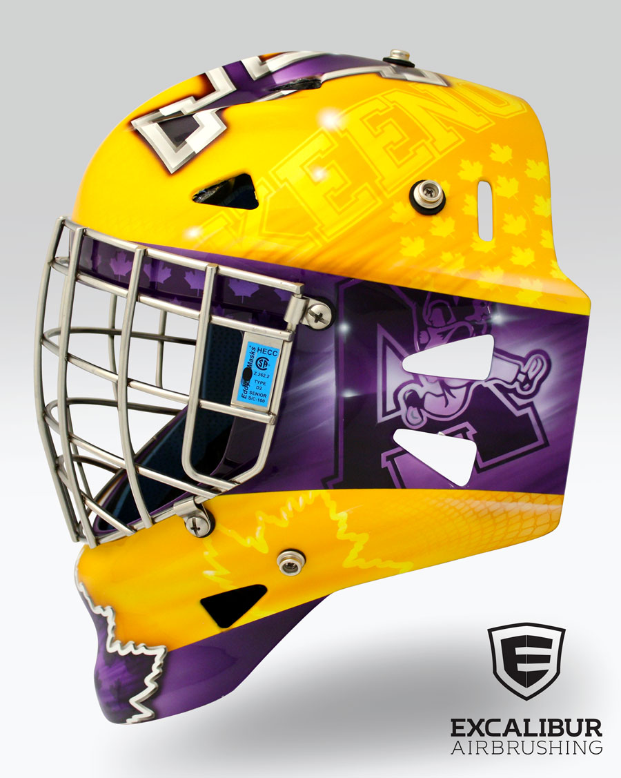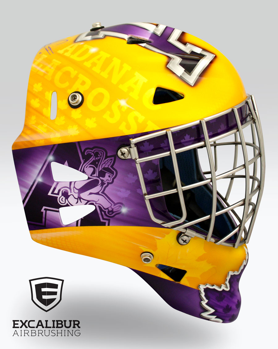 - Goalie mask for Team Canada Field Hockey goalie, Kaitlyn Williams, designed and airbrushed by Ian Johnson #ianjohnsonart #excaliburairbrushing #goaliemasks #customairbrushing #airbrushartist #goaliemaskpainting #maskpainting #helmetpainting #customhelmets #customairbrushedgoaliemask #teamcanada #teamcanadafieldhockey