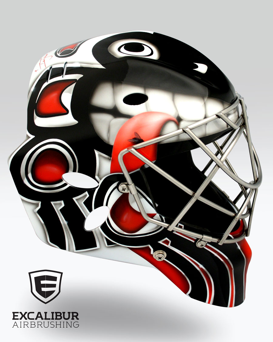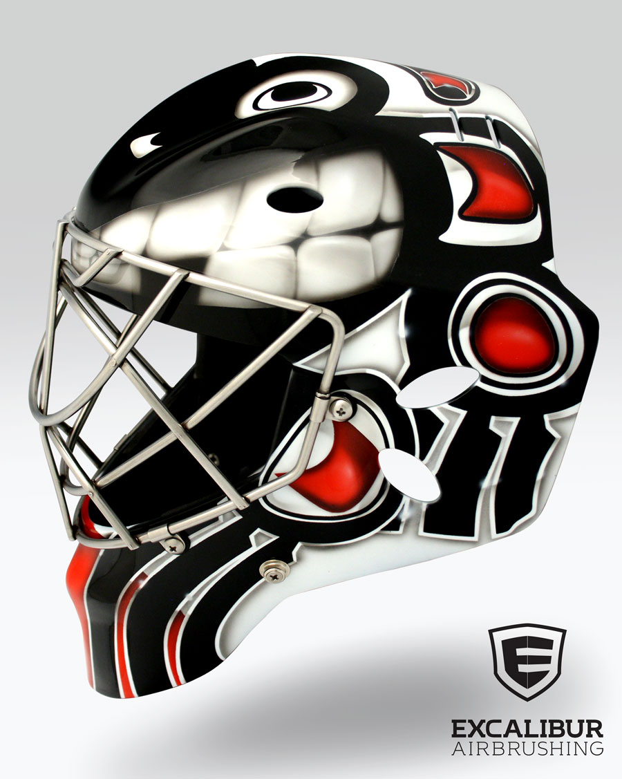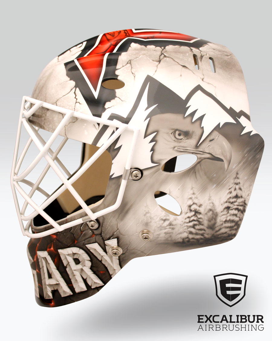 - "Jet Attack" Goalie mask designed and airbrushed by Ian Johnson #ianjohnsonart #excaliburairbrushing #goaliemasks #customairbrushing #airbrushartist #goaliemaskpainting #maskpainting #helmetpainting #customhelmets #customairbrushedgoaliemask