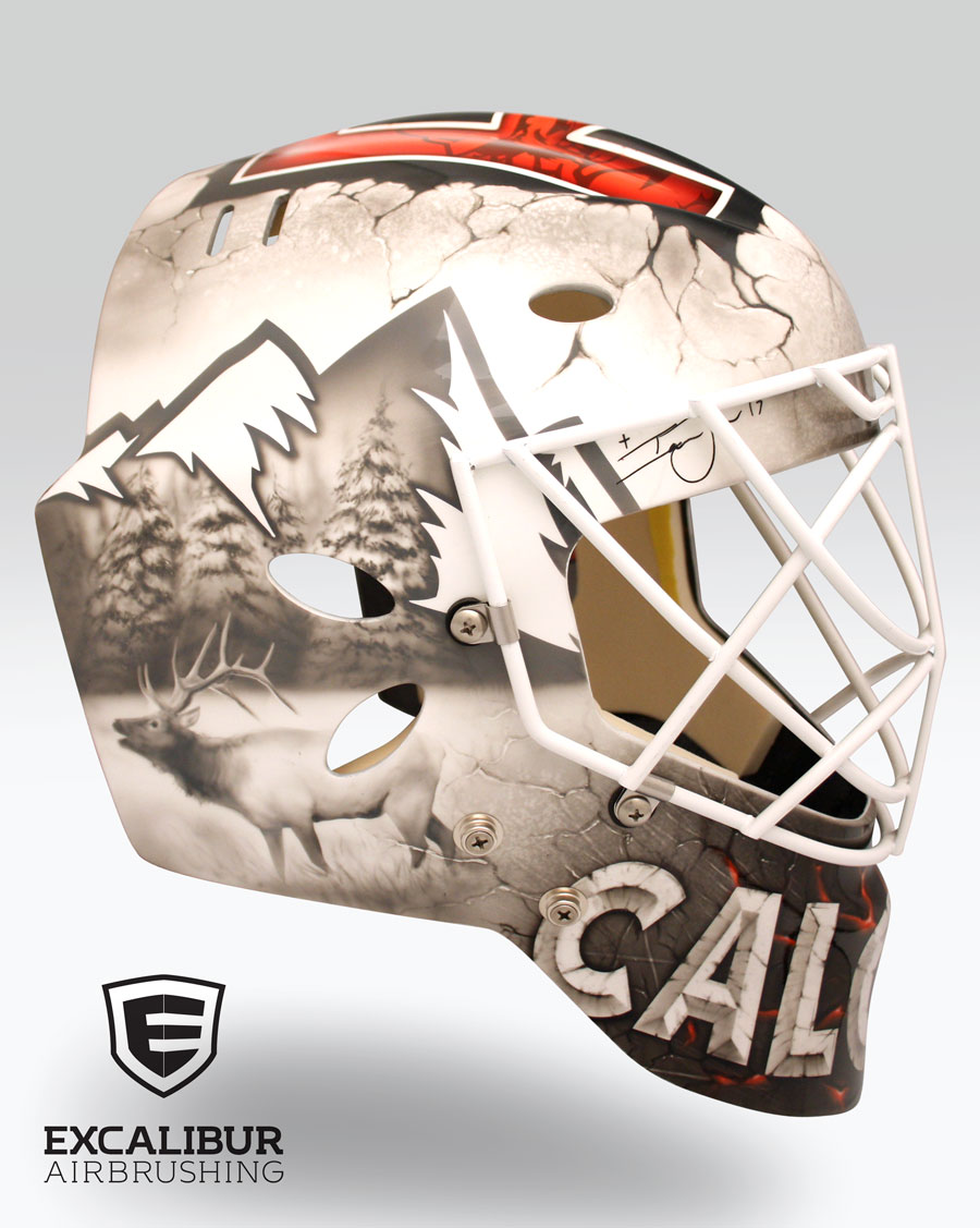- Tribute to Noah Trulsen, goalie mask designed and airbrushed by Ian Johnson #ianjohnsonart #excaliburairbrushing #goaliemasks #customairbrushing #airbrushartist #goaliemaskpainting #maskpainting #helmetpainting #customhelmets #customairbrushedgoaliemask