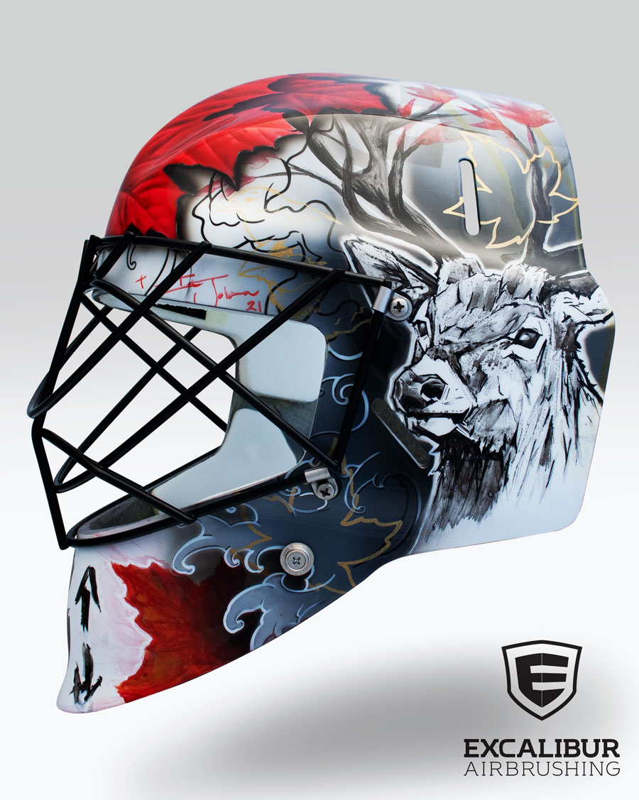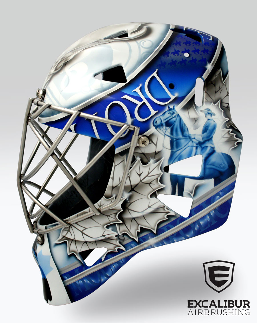 - "RCMP Tribute" Goalie mask designed and airbrushed by Ian Johnson #ianjohnsonart #excaliburairbrushing #goaliemasks #customairbrushing #airbrushartist #goaliemaskpainting #maskpainting #helmetpainting #customhelmets #customairbrushedgoaliemask #RCMP