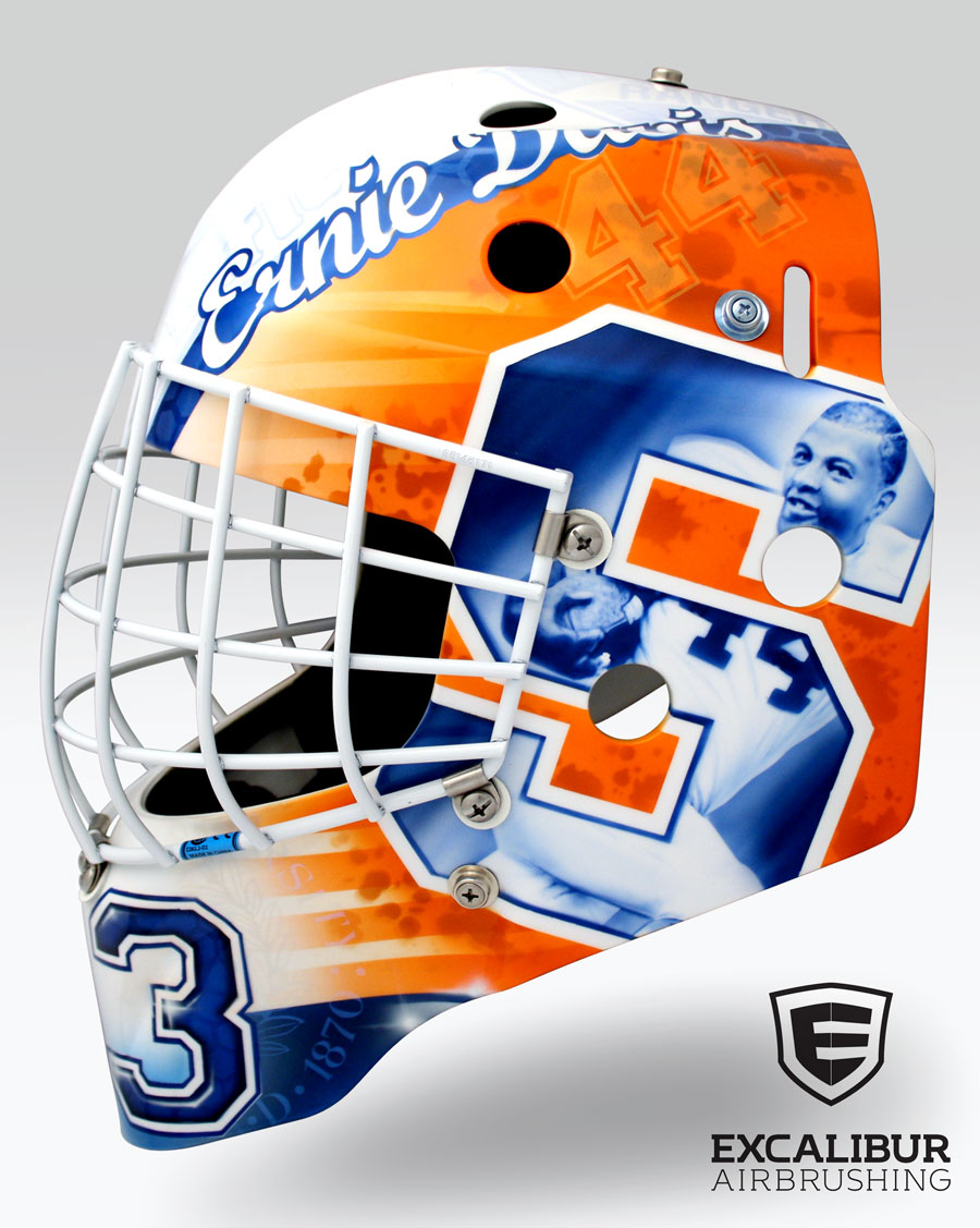 Jim Brown Ernie Davis Tribute goalie mask designed and airbrushed by Ian Johnson